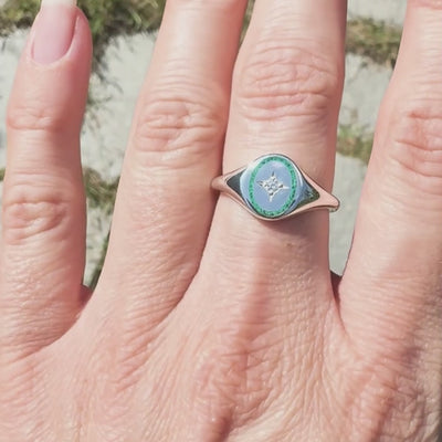 The ring is available in silver, 14K and 18K yellow, rose, and white gold. You can choose which type of memorial material you'd like to incorporate into the piece, such as ashes, hair, or teeth. These are carefully set into the ring along with the crushed gemstone of your choice. After your purchase, you will receive an envelope with a prepaid return label to send me the ashes or other remembrance material. You may also deliver the material in person at the studio. If you prefer not to include any memorial material, you can select “no memorial material” in the options. In that case, the ring will be set with gemstone only.